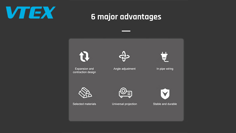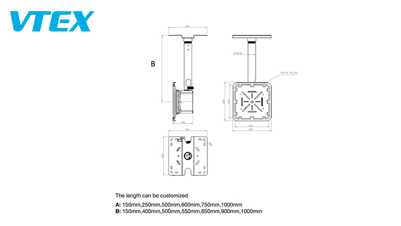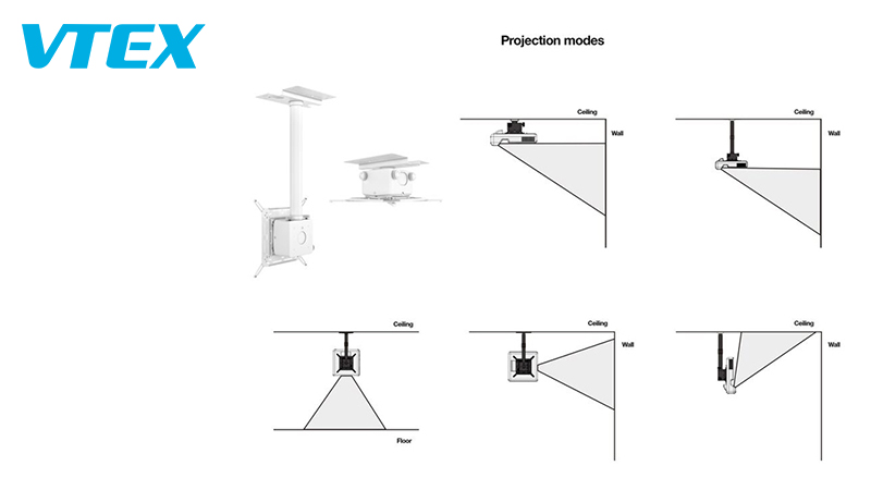 Vtex Projector Ceiling Mount series support 200mm/ 500-800mm/ 600-1000mm/ 900-1600mm/ 1600-3000mm and more.