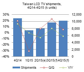 Taiwan LCD TV shipments increase 16% in 3Q 2015